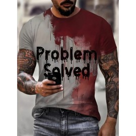 1pc メンズ カジュアル 3D レタープリント Tシャツ、夏用 ラウンドネック 半袖 ニット Tシャツ、ポリエステル ブレンド、レギュラーフィット、通気性のある素材、大人向け - "問題解決" グラフィック Tシャツ