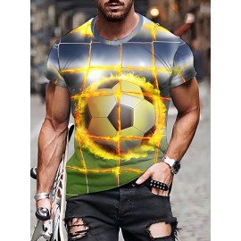 メンズサッカーボールグラフィックTシャツ - カジュアルクルーネック、3Dデジタルプリント、通気性ポリエステル、洗濯機可、半袖、レギュラーフィット - 夏とアウトドア活動に最適