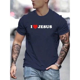 1pc メンズ カジュアル 3D レタープリント Tシャツ、夏用 ラウンドネック 半袖 ニット Tシ..