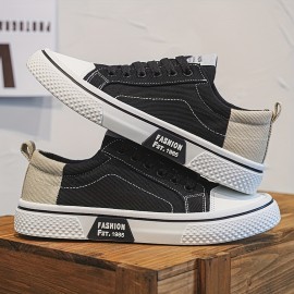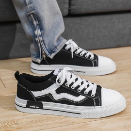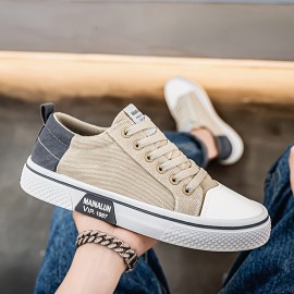 1ペアメインアランレトロキャンバススニーカー - 休みの日用の低いトップカジュアルシューズ、スタイリッシュなカラーブロックデザイン、レースアップフラットプラットフォーム、全てのシーズンに適しています。屋外活動やカジュアルな服装に最適です。