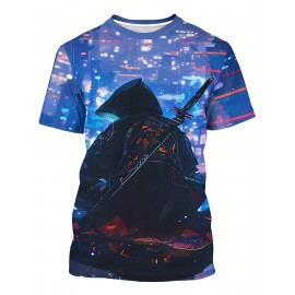 メンズ 3Dプリント サッドバックパック ボーイ グラフィック、ラウンドネック 半袖 夏 Tシャツ、カジュアル ニット生地、レギュラーフィット、ポリエステル、伸縮性、プリントデザイン、メンズファッショントップ