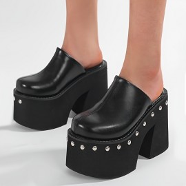 女性用ブラックウェッジサンダル、メタリックスタッズ、パーティーシーンに