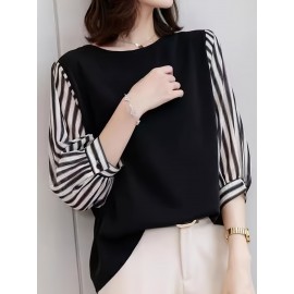 かわいい日本の女性のための、の新作、半袖レース透かし彫り通気性ラウンドネックTシャツ、バットウィングスリーブ付き。