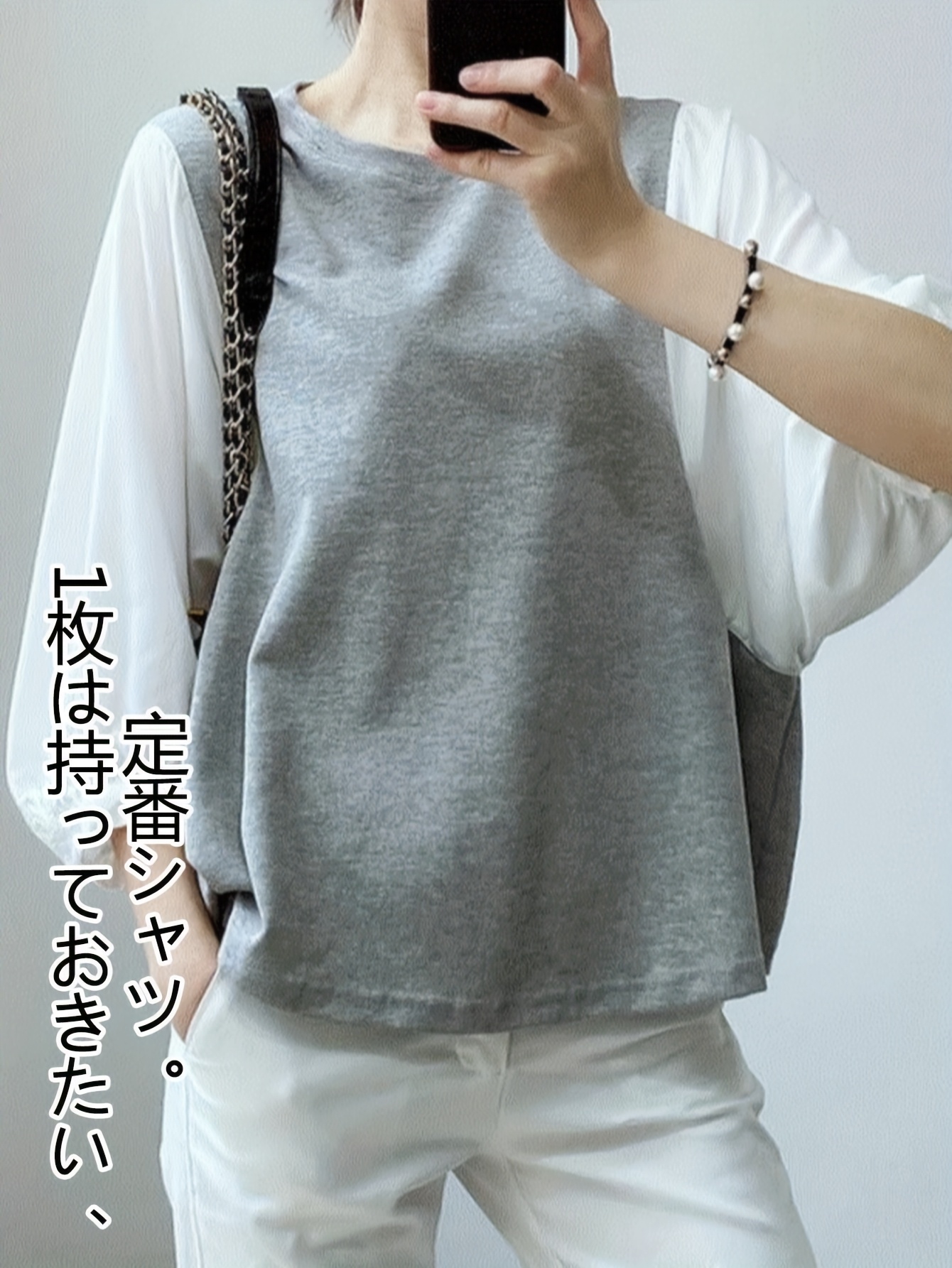 Tシャツ レイヤード 風 カットソー【即納】 重ね着 二の腕カバー ドルマン ロング トップス ティーシャツ レディース インナー ビック チュニック 体型カバー 半袖 大きいサイズ Uネック ストレッチ オーバーサイズ 無地 春 夏