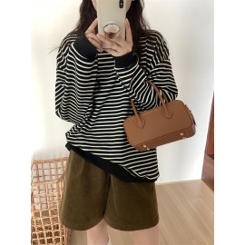 ボーダー レーナー スウェット ビッグロンT/長袖Tシャツ 万能ボーダーカットソー Tシャツ トトップス ストレッチ ドロップショルダー 韓国ファッション