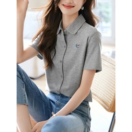 女性用カジュアルスリムポロシャツ - 半袖、ライトグレーの刺繍ロゴ付き、春/夏用レギュラーフィット、カジュアルアットワール|スリムフィットトップ|刺繍ロゴシャツ